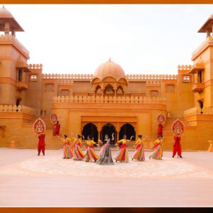 The highlight of the ceremony was the main Half Saree and Dhoti event, where Nidhi and Nihaan made a royal entrance. Welcomed with music, cheers, and a vibrant dance performance by cheer girls, they looked regal as they took the stage.