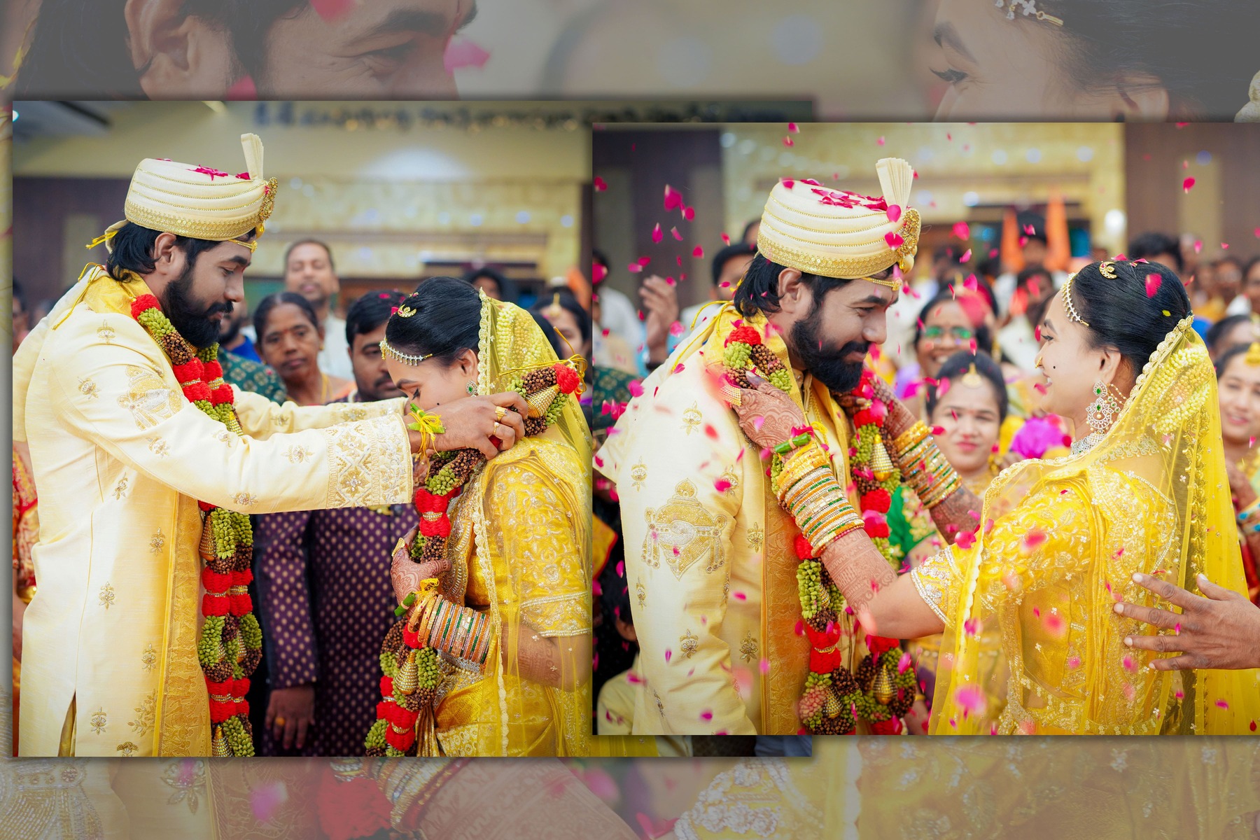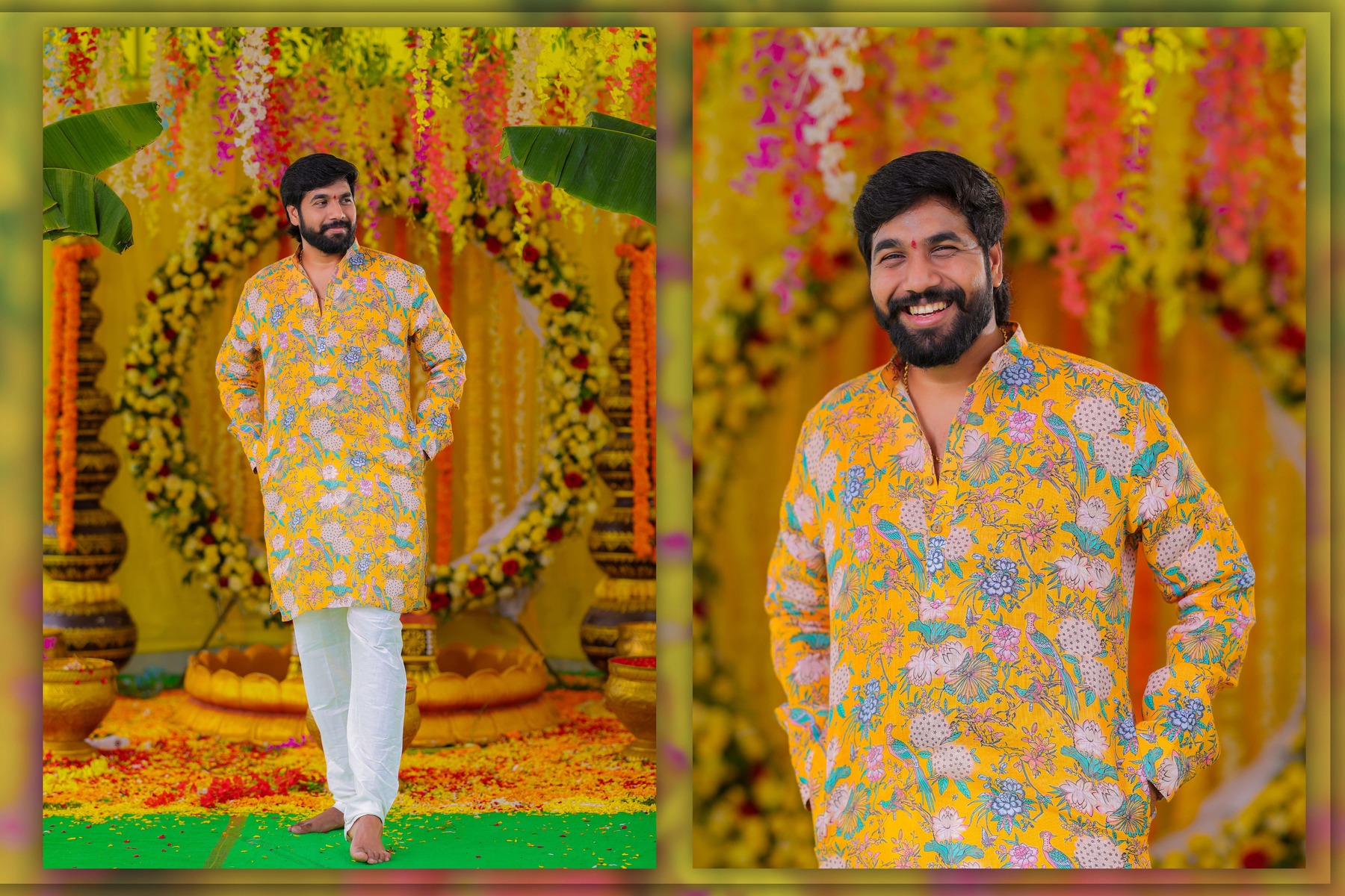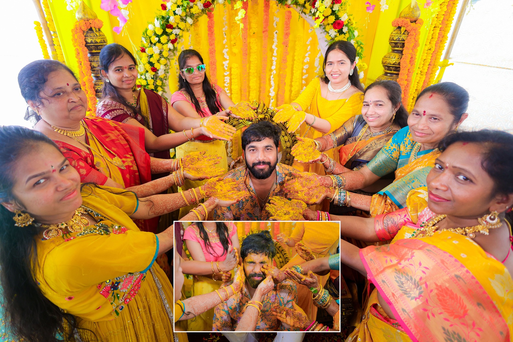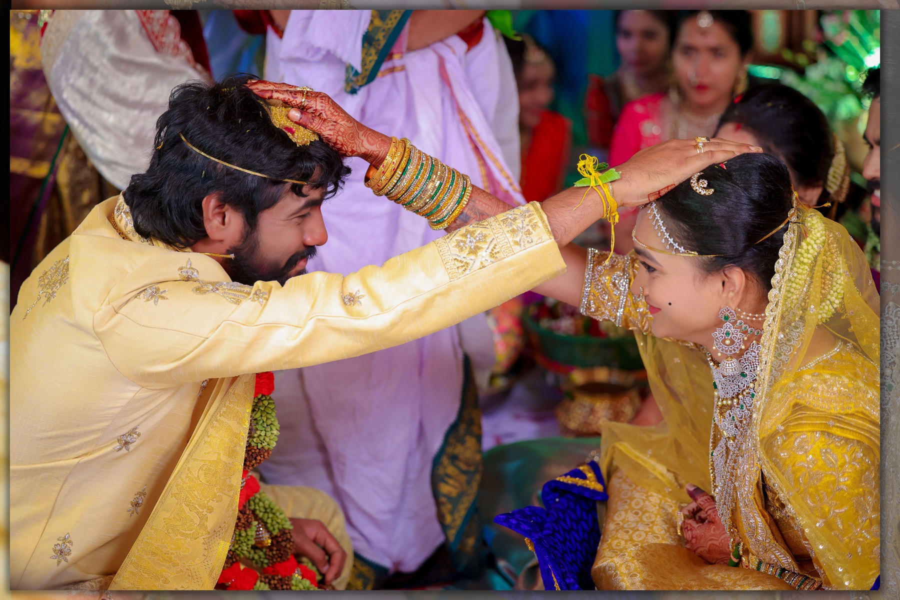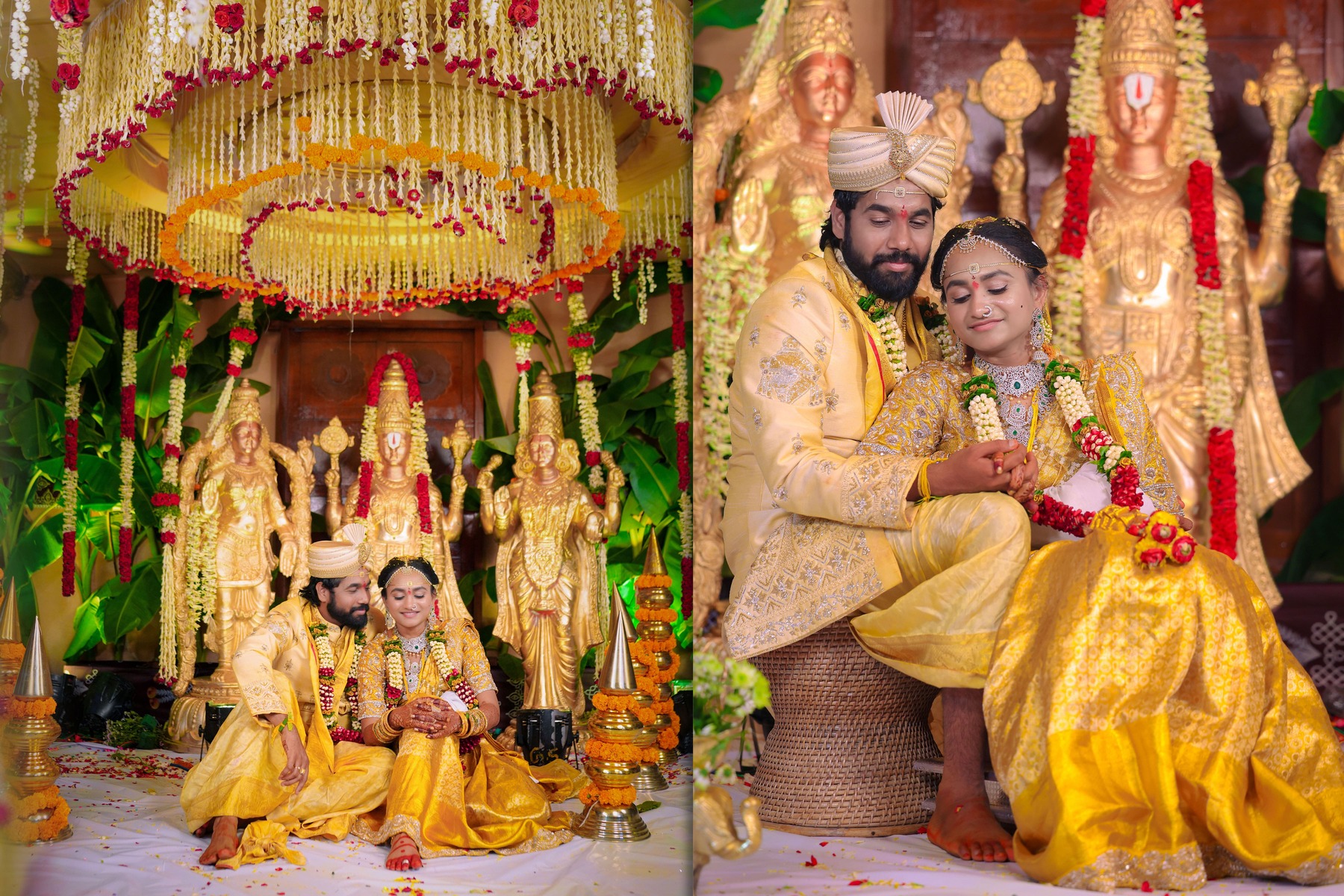 Similarly, Nishitha’s Haldi showcased emotional warmth and elegance. Golden tones enhanced her radiant expressions. Additionally, family members added emotional depth through loving gestures.