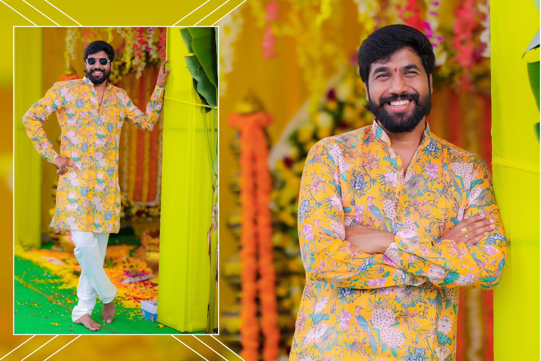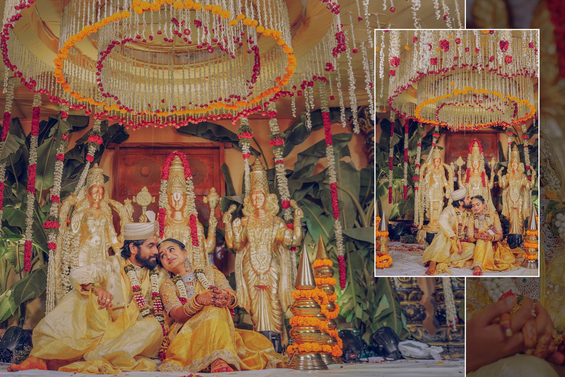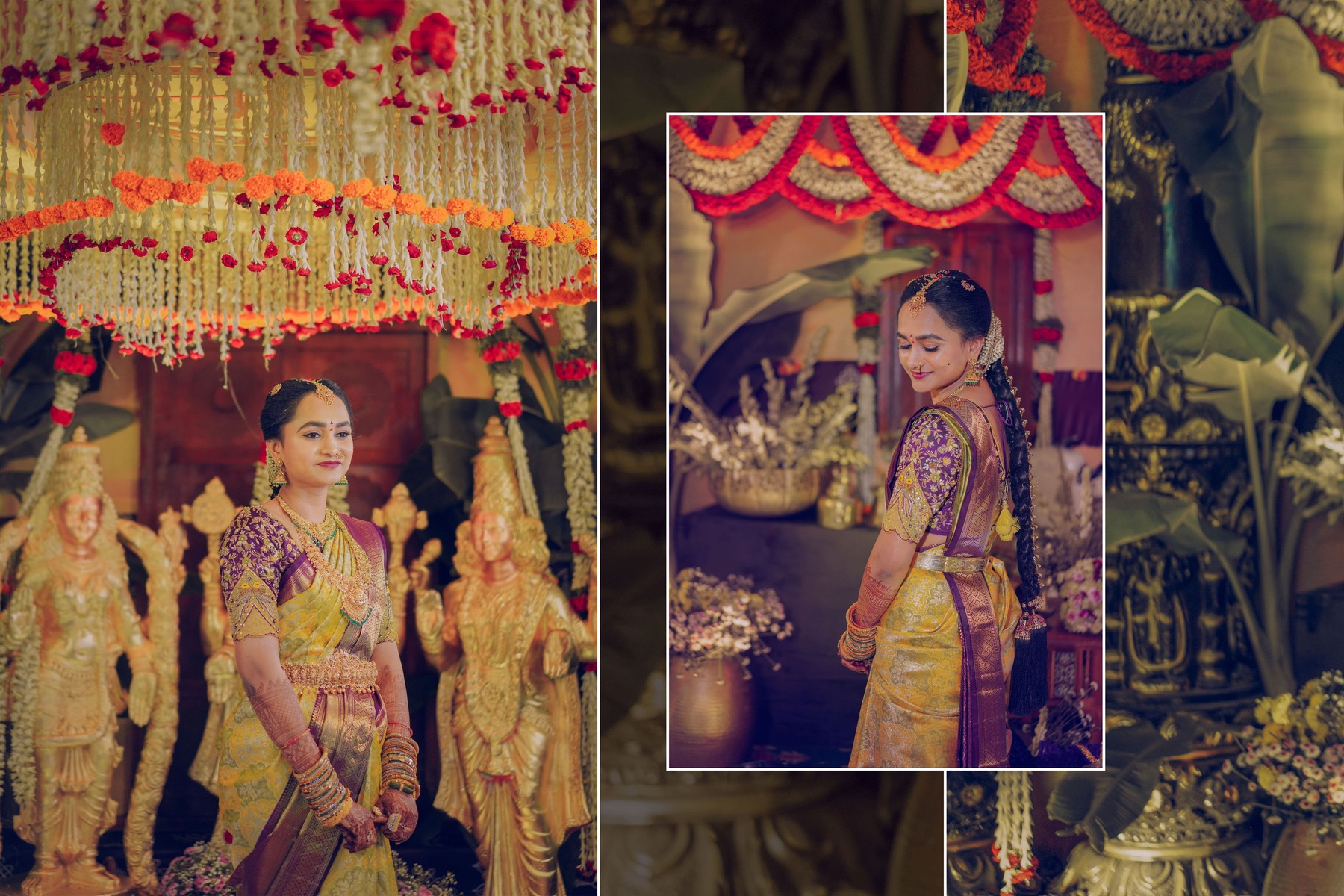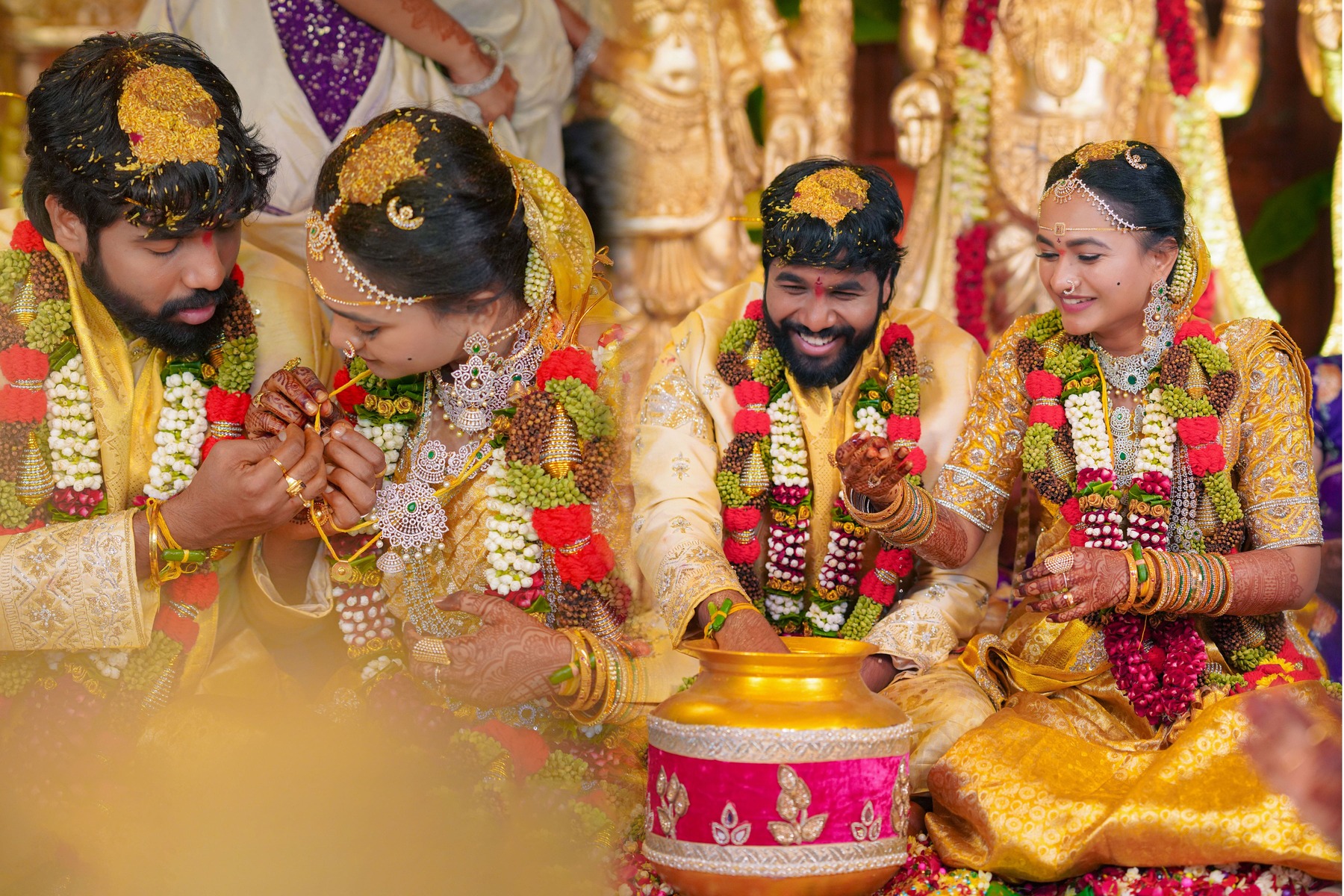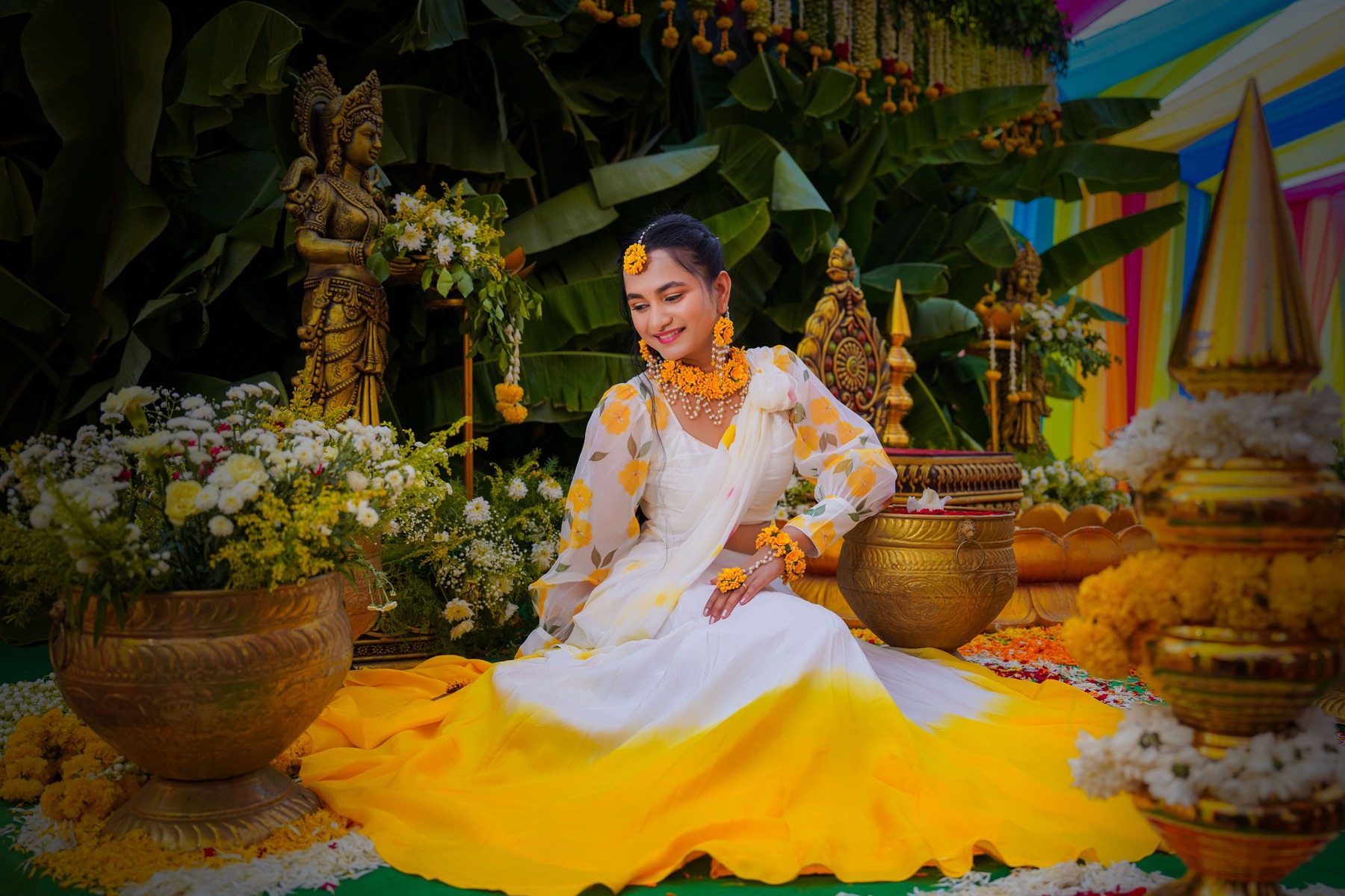 Similarly, Nishitha’s Haldi showcased emotional warmth and elegance. Golden tones enhanced her radiant expressions. Additionally, family members added emotional depth through loving gestures.