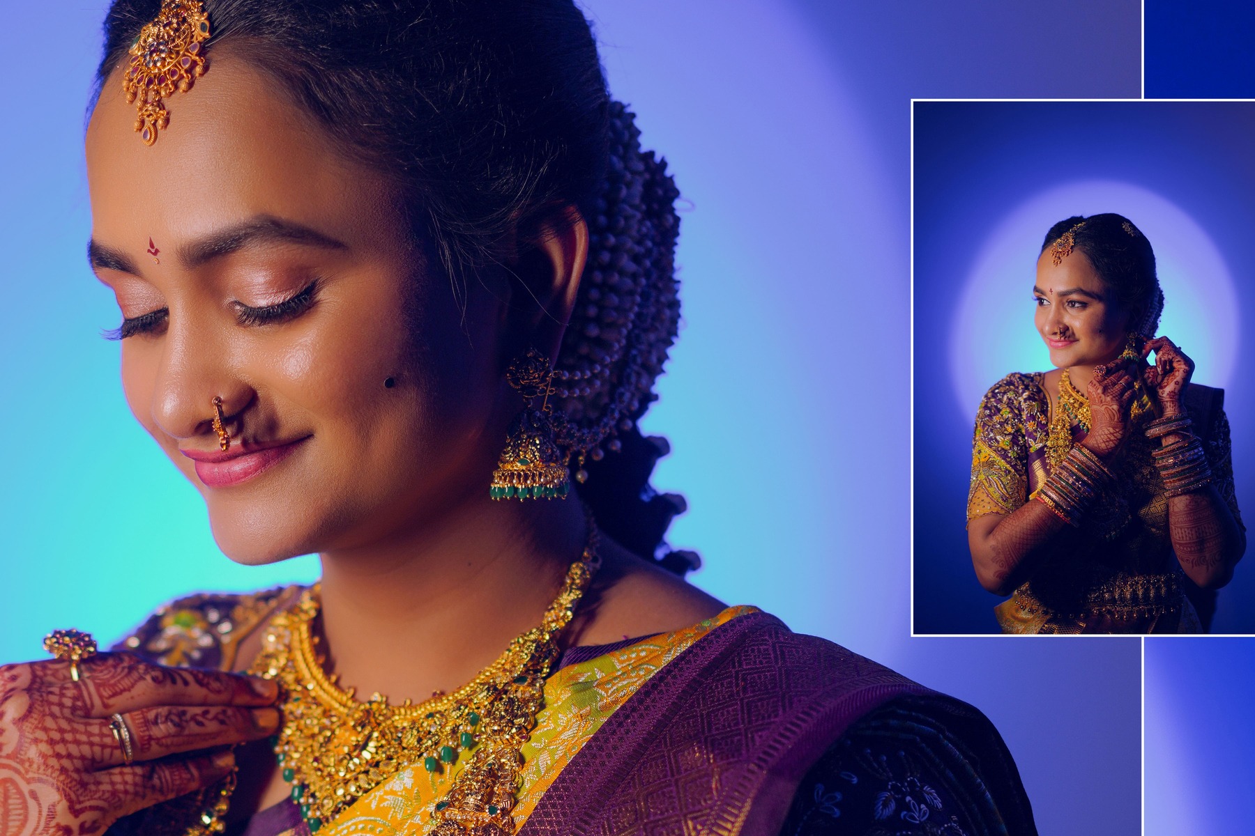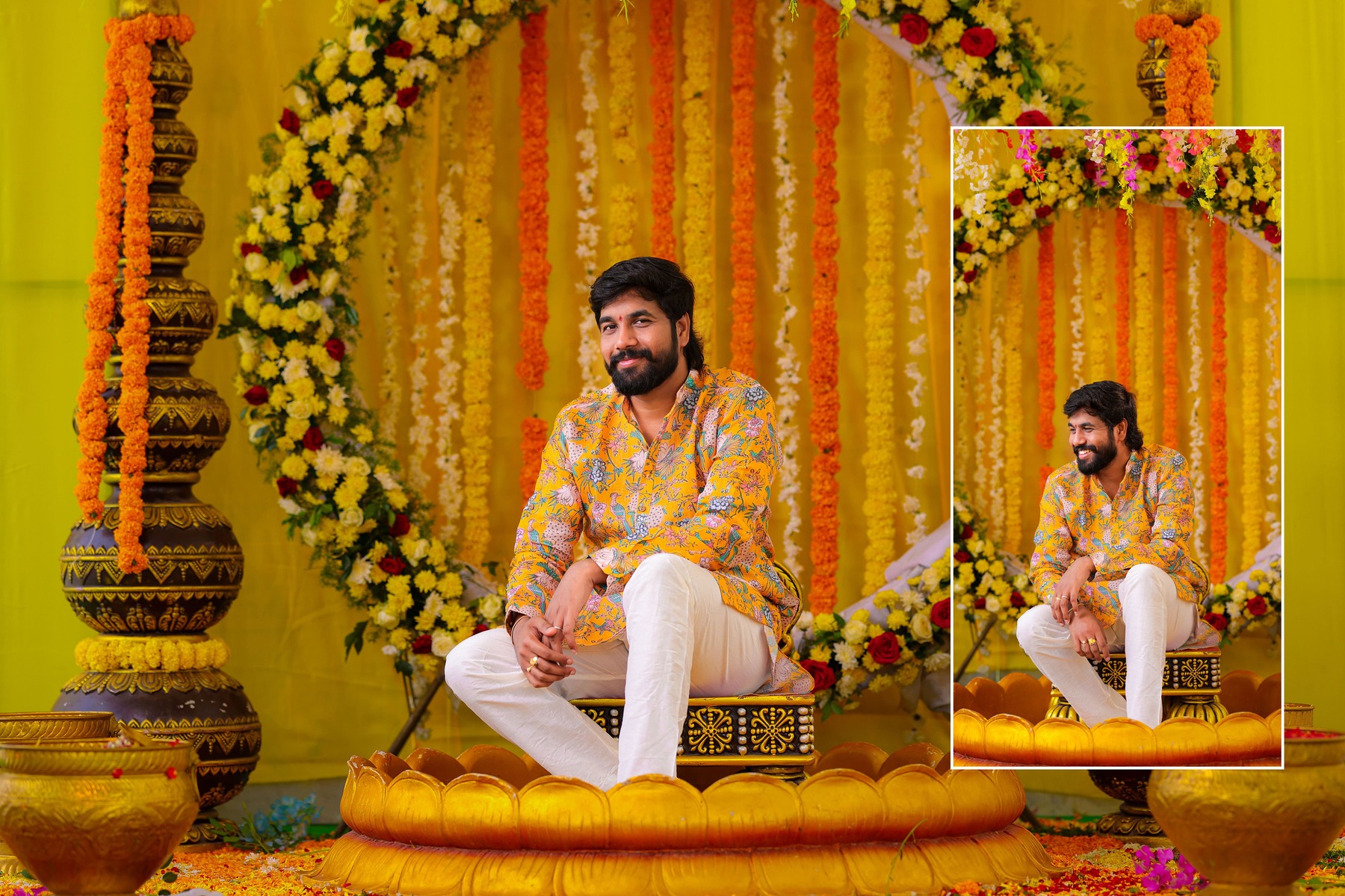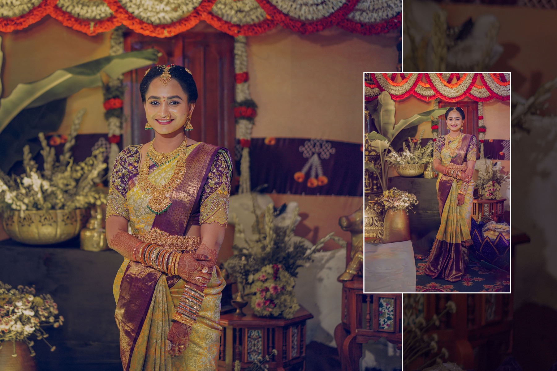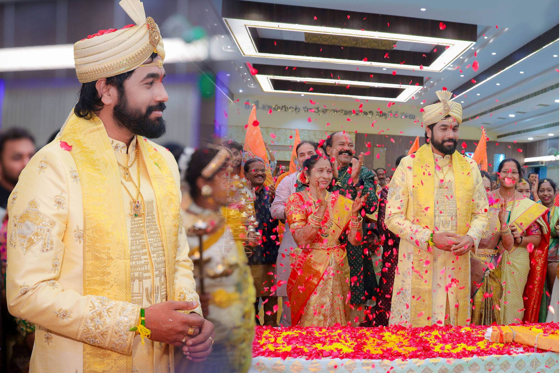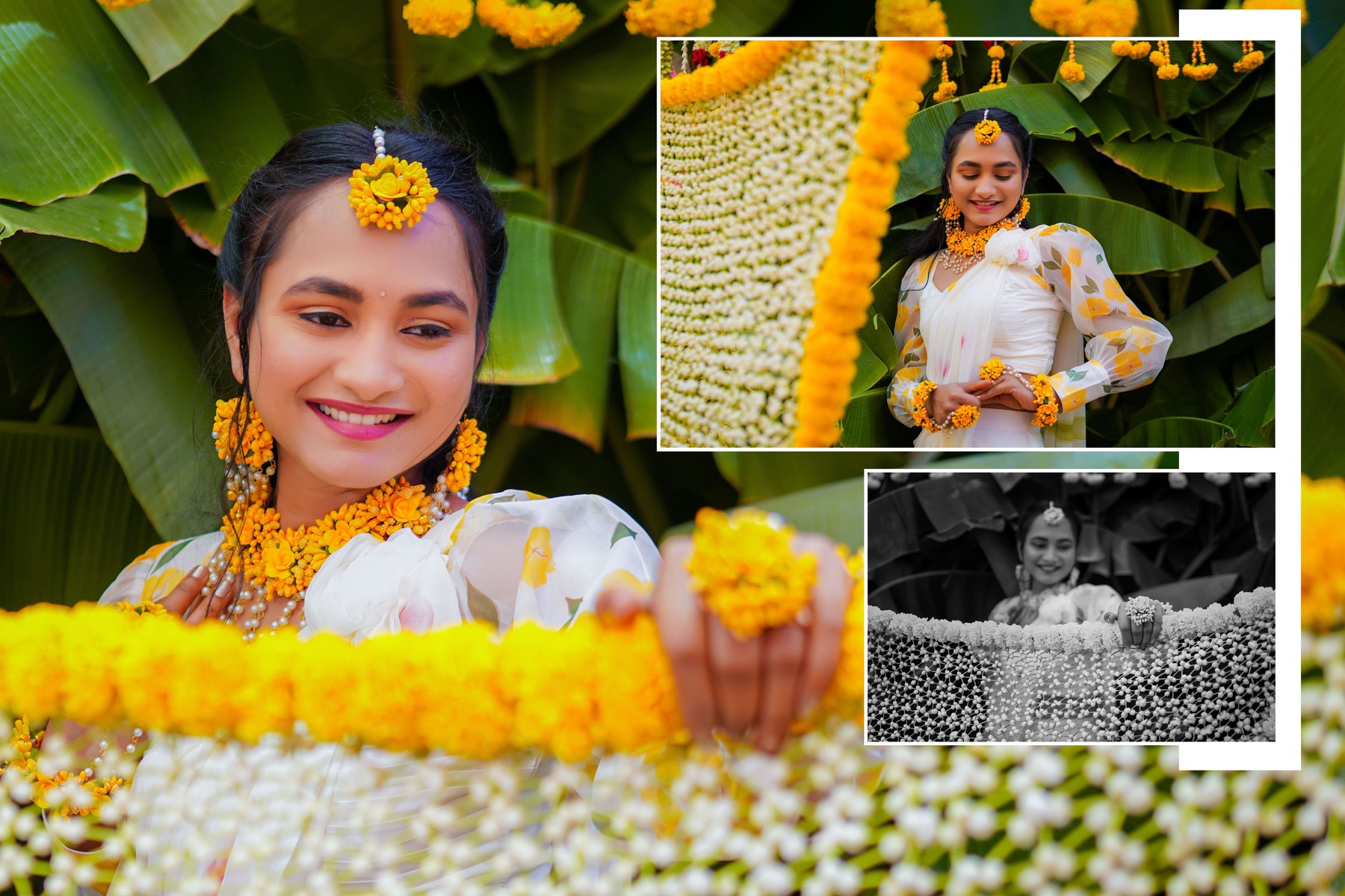 Similarly, Nishitha’s Haldi showcased emotional warmth and elegance. Golden tones enhanced her radiant expressions. Additionally, family members added emotional depth through loving gestures.