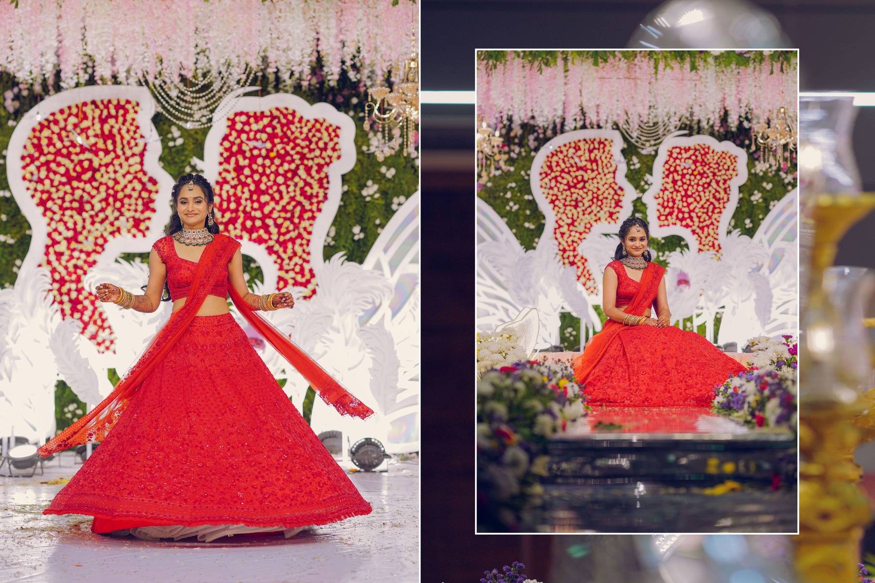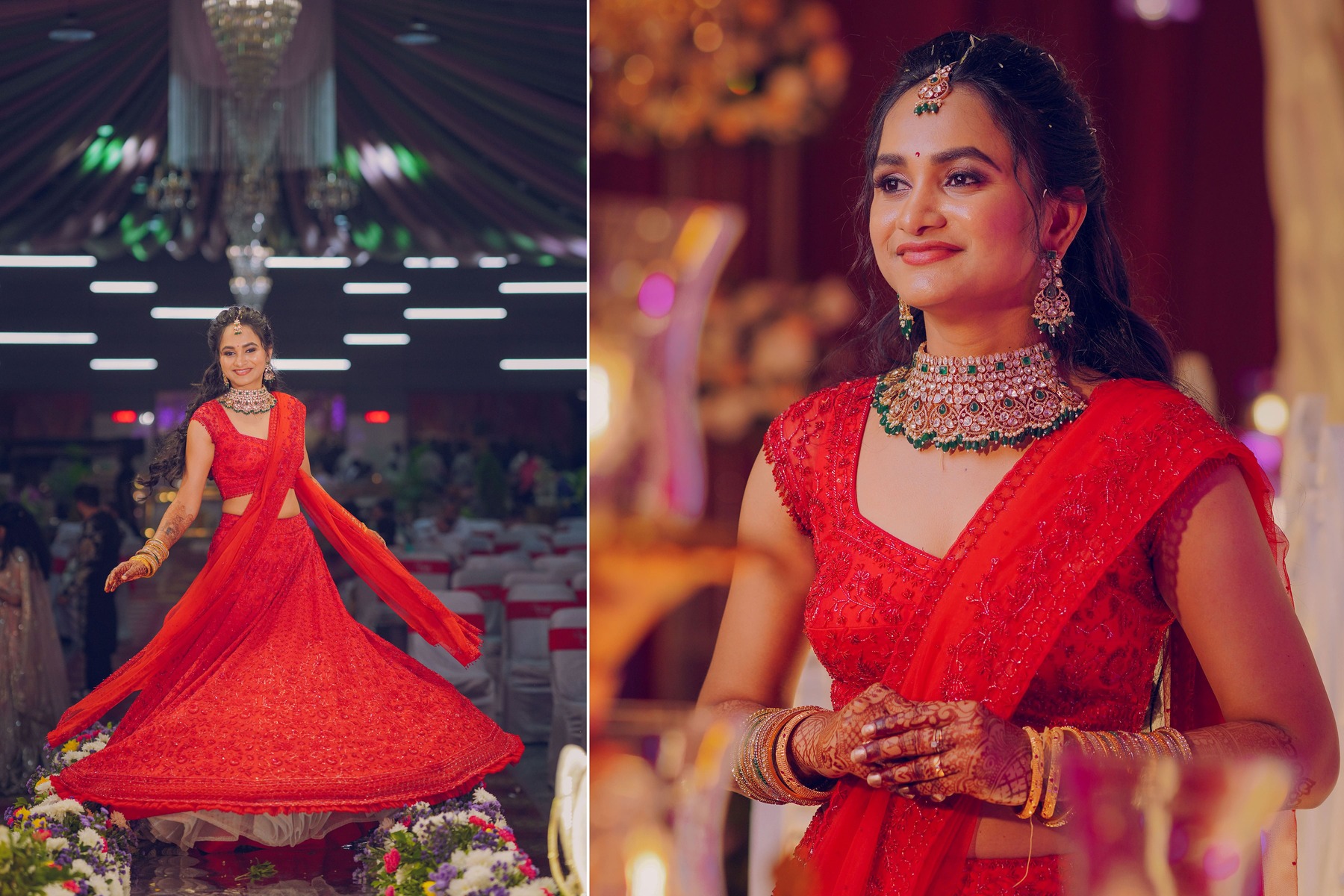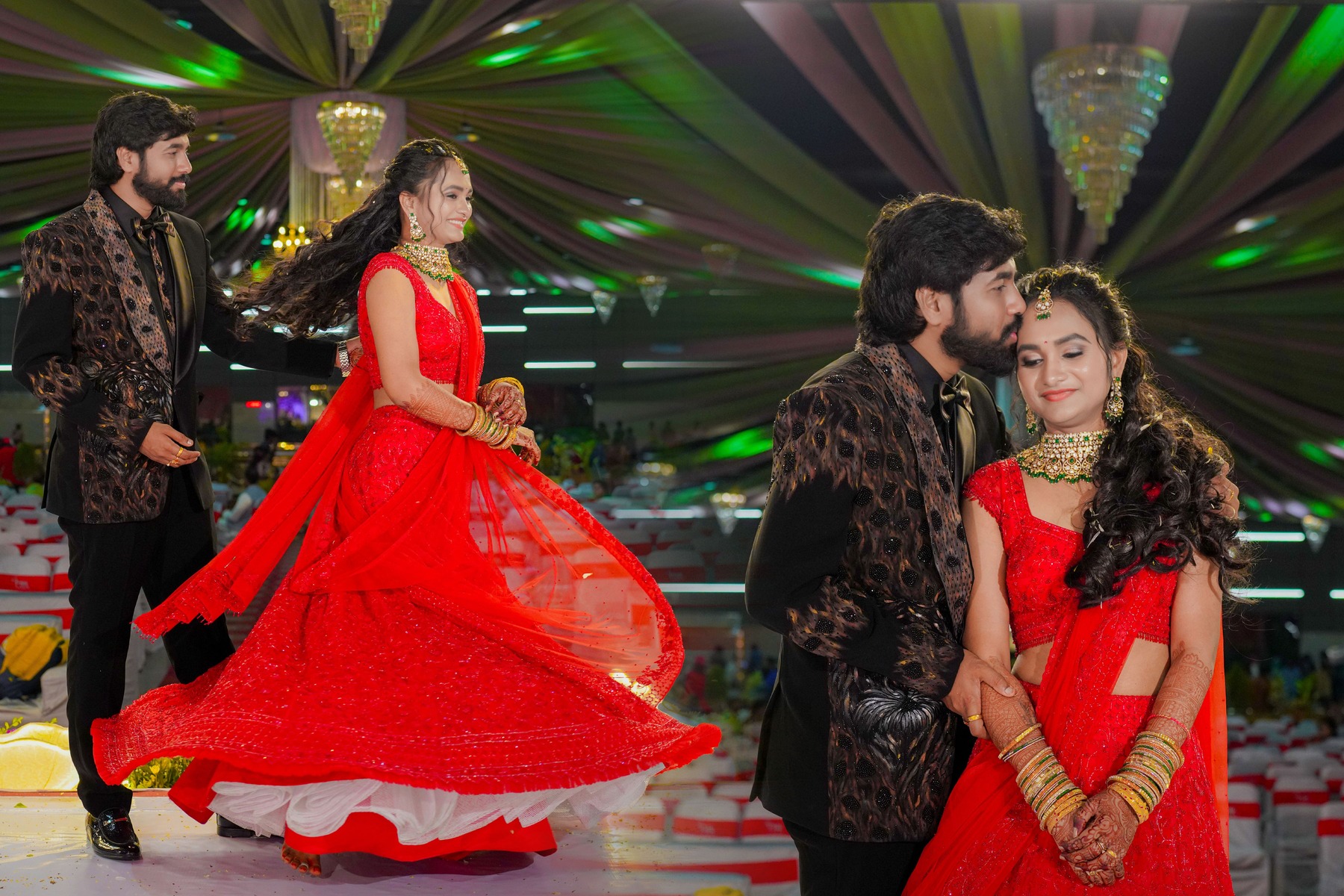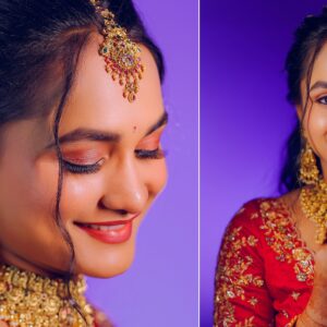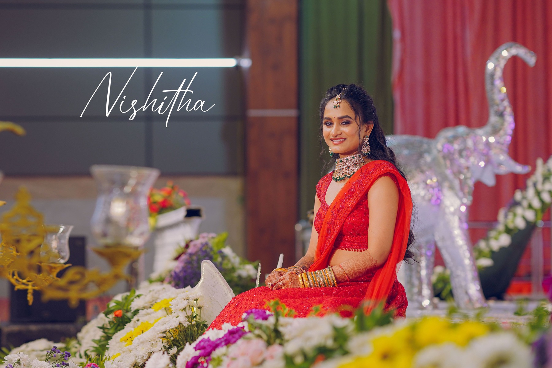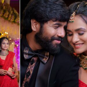 The reception marked the grand conclusion. Therefore, Nishitha wore a stunning red lehenga. Her elegance captivated everyone present.