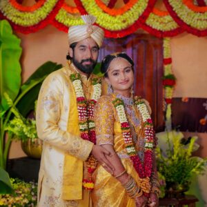 The wedding day reflected cultural richness and emotional intensity. Therefore, Nishitha looked radiant and elegant. Meanwhile, Akhil expressed pride and happiness.
