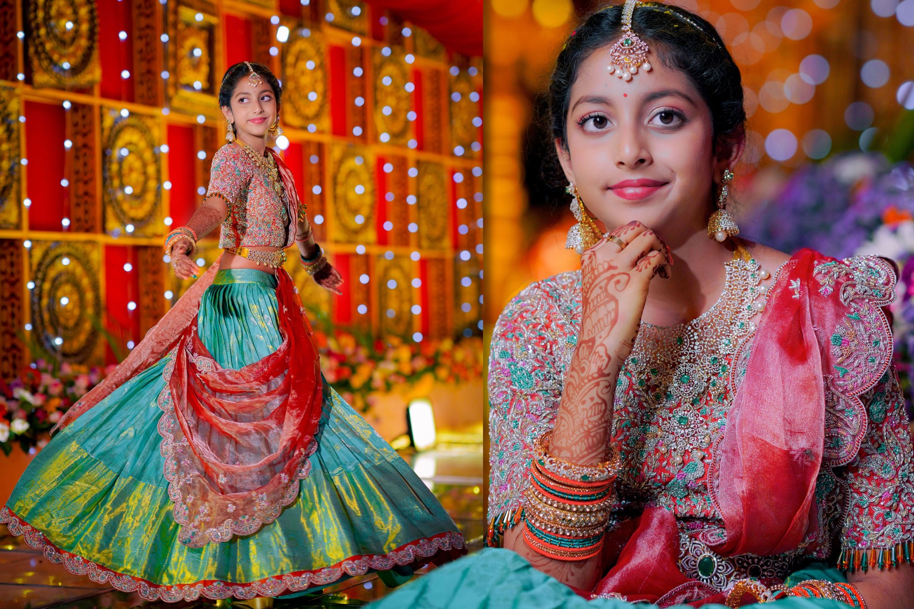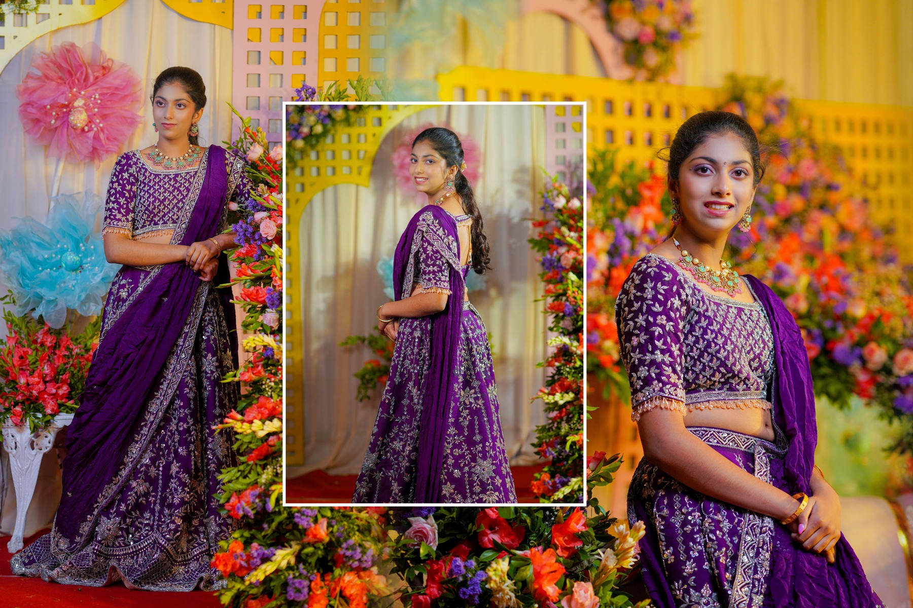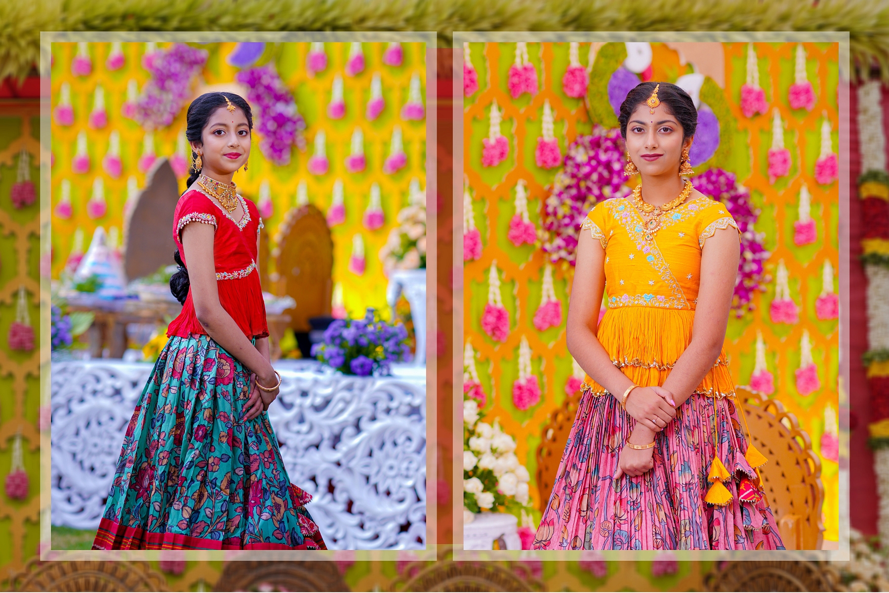 Ranhitha and Sanhitha’s Half-Saree Ceremony was more than just a celebration; it was a beautiful journey of tradition, family love, and joyous memories. From the playful Haldi to the vibrant Mehendi and Sangeeth, culminating in the sacred main ceremony, every moment reflected the sisters’ grace and the warmth of their family. The day was filled with laughter, blessings, and cultural richness, all captured perfectly to become timeless memories. This celebration will always be remembered as a heartfelt tribute to heritage, elegance, and the unbreakable bond between sisters.