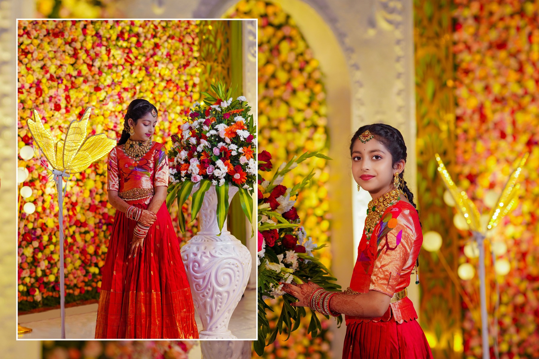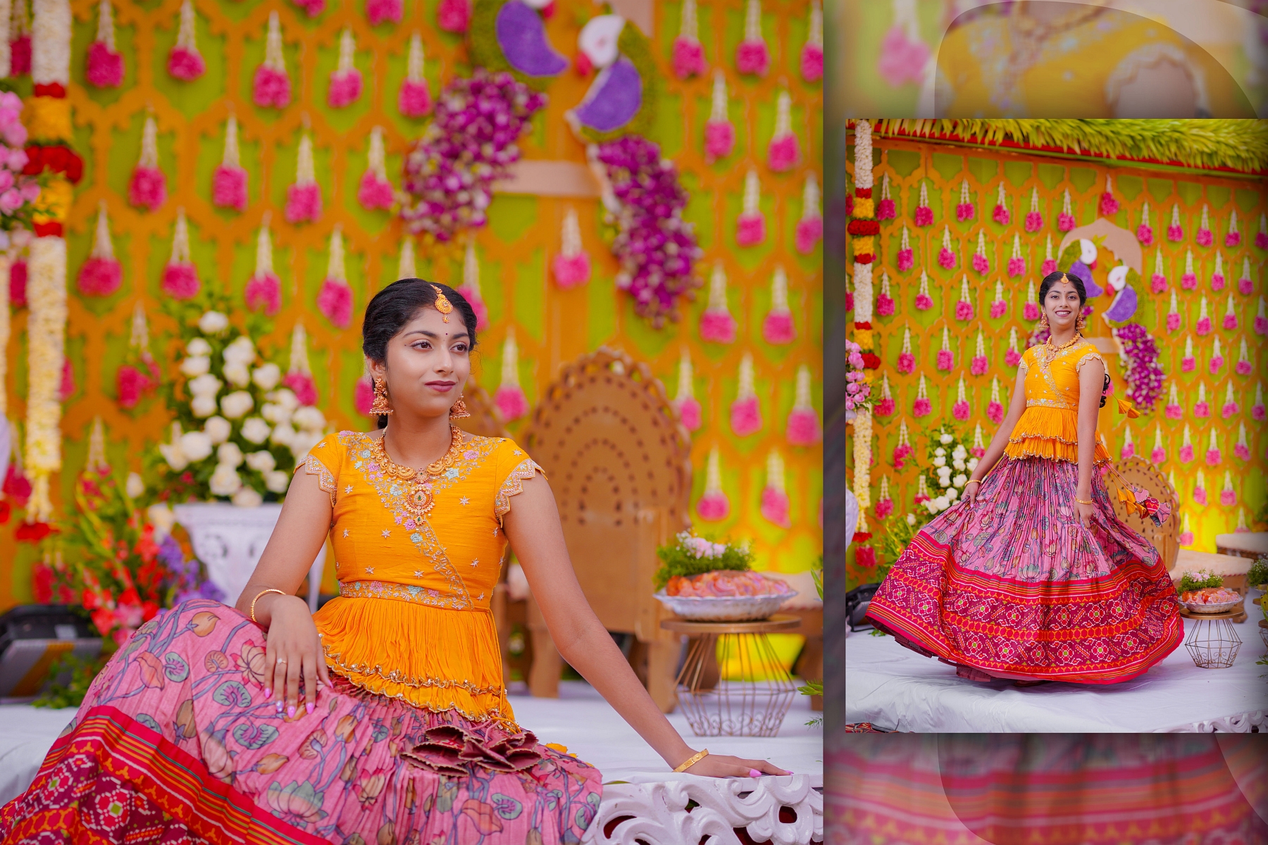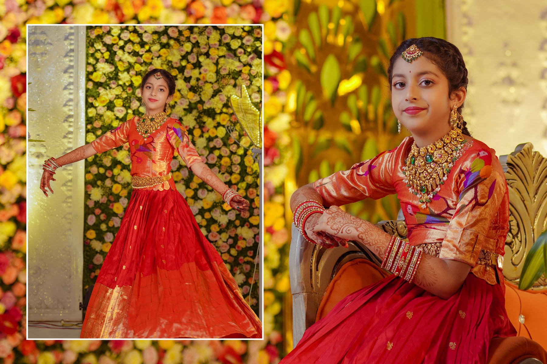 Ranhitha and Sanhitha’s Half-Saree Ceremony was more than just a celebration; it was a beautiful journey of tradition, family love, and joyous memories. From the playful Haldi to the vibrant Mehendi and Sangeeth, culminating in the sacred main ceremony, every moment reflected the sisters’ grace and the warmth of their family. The day was filled with laughter, blessings, and cultural richness, all captured perfectly to become timeless memories. This celebration will always be remembered as a heartfelt tribute to heritage, elegance, and the unbreakable bond between sisters.