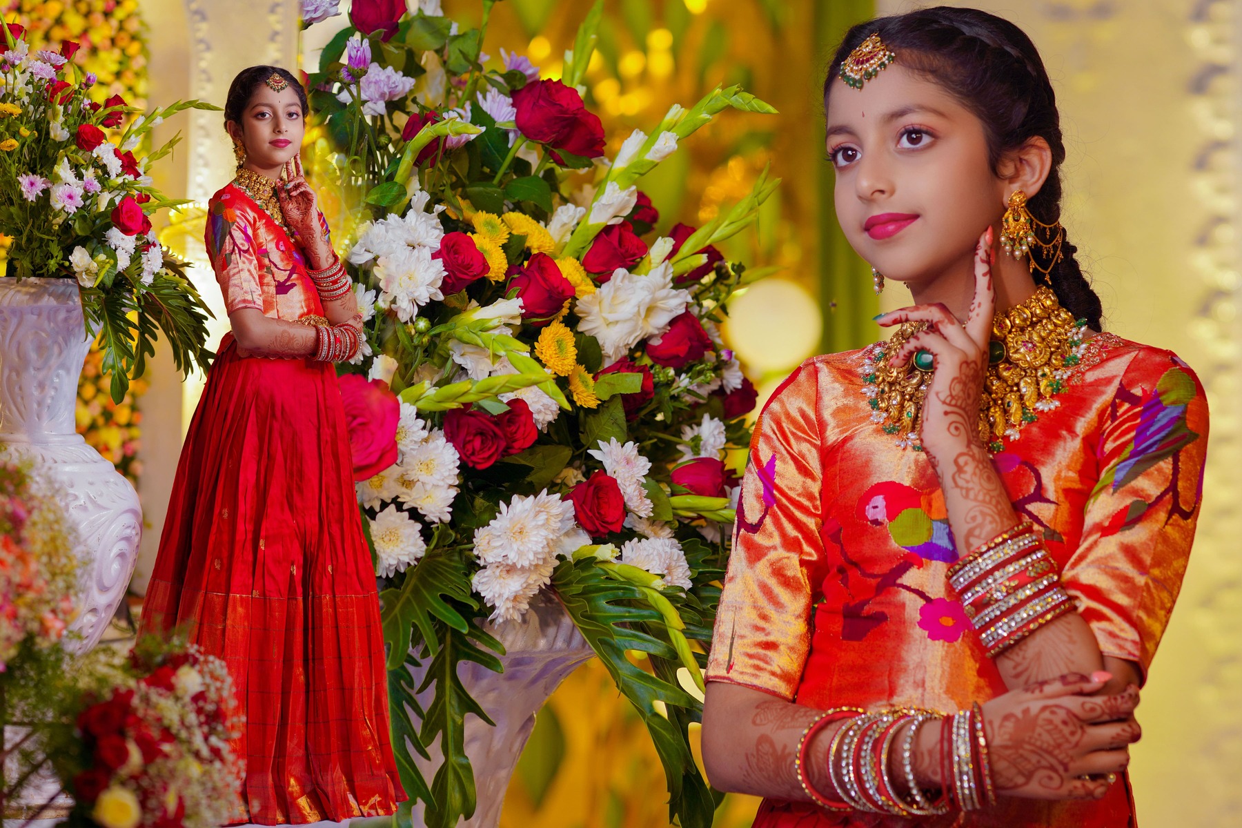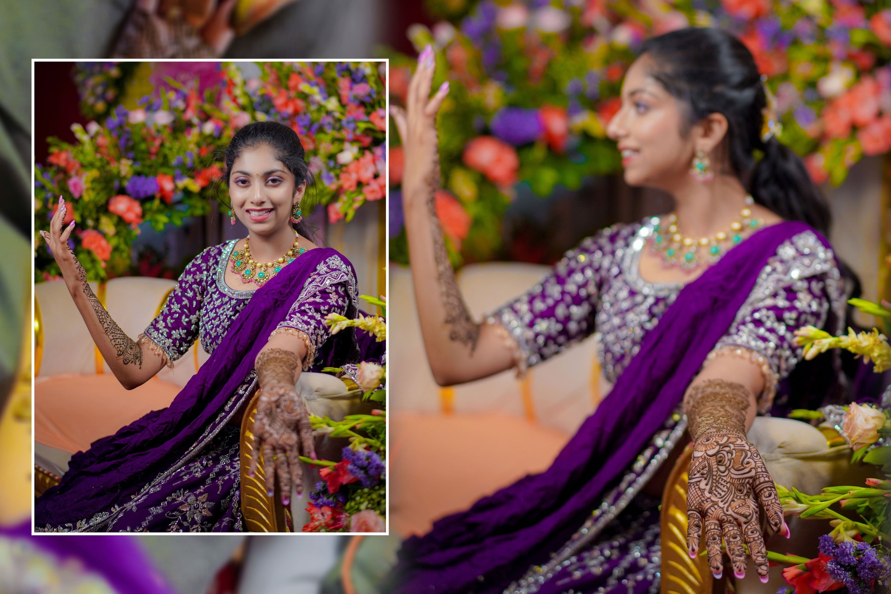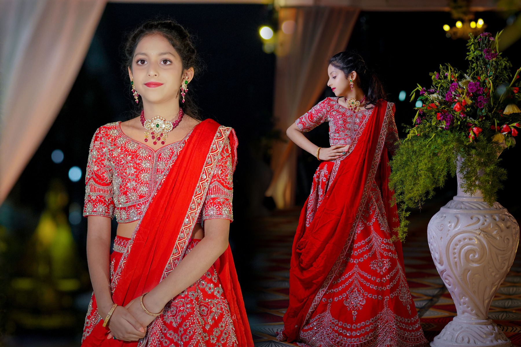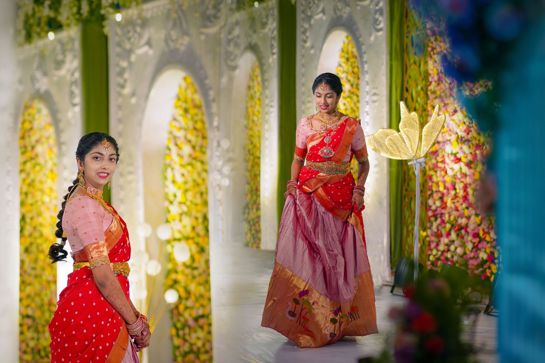 Meanwhile, portraits brought out the detailed artistry — from the embroidery on the sarees to the glow of jewellery and décor that turned the venue into a living piece of art.
