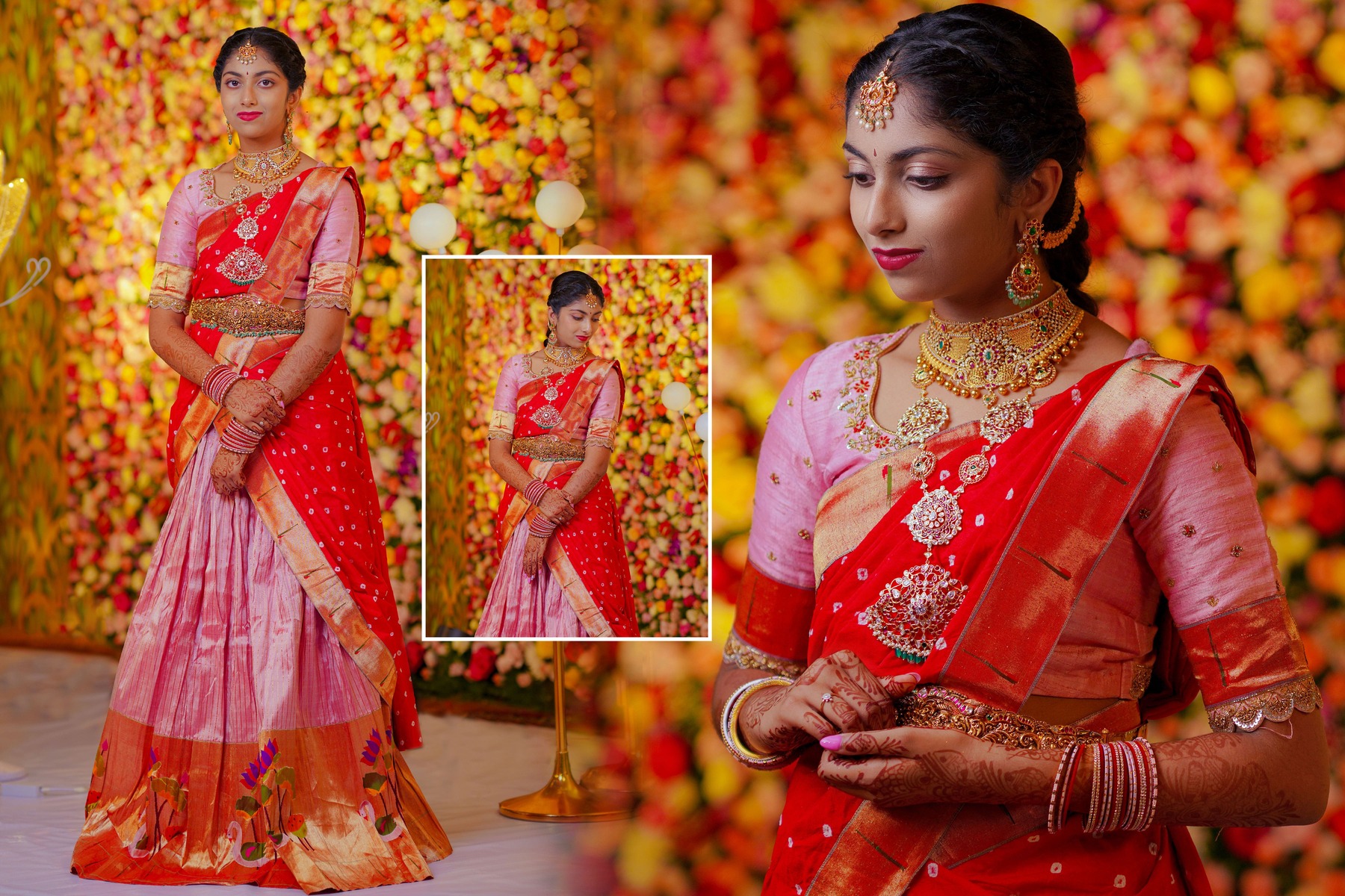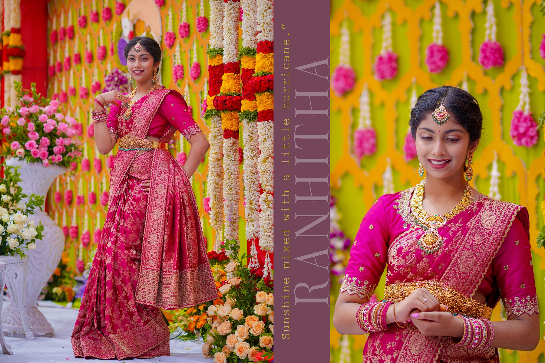 Their traditional outfits were masterpieces by arunas_couture, pellipoolajada, myriti, sabyasachiofficial, and mrunalinirao, each one adding grace to every candid frame.