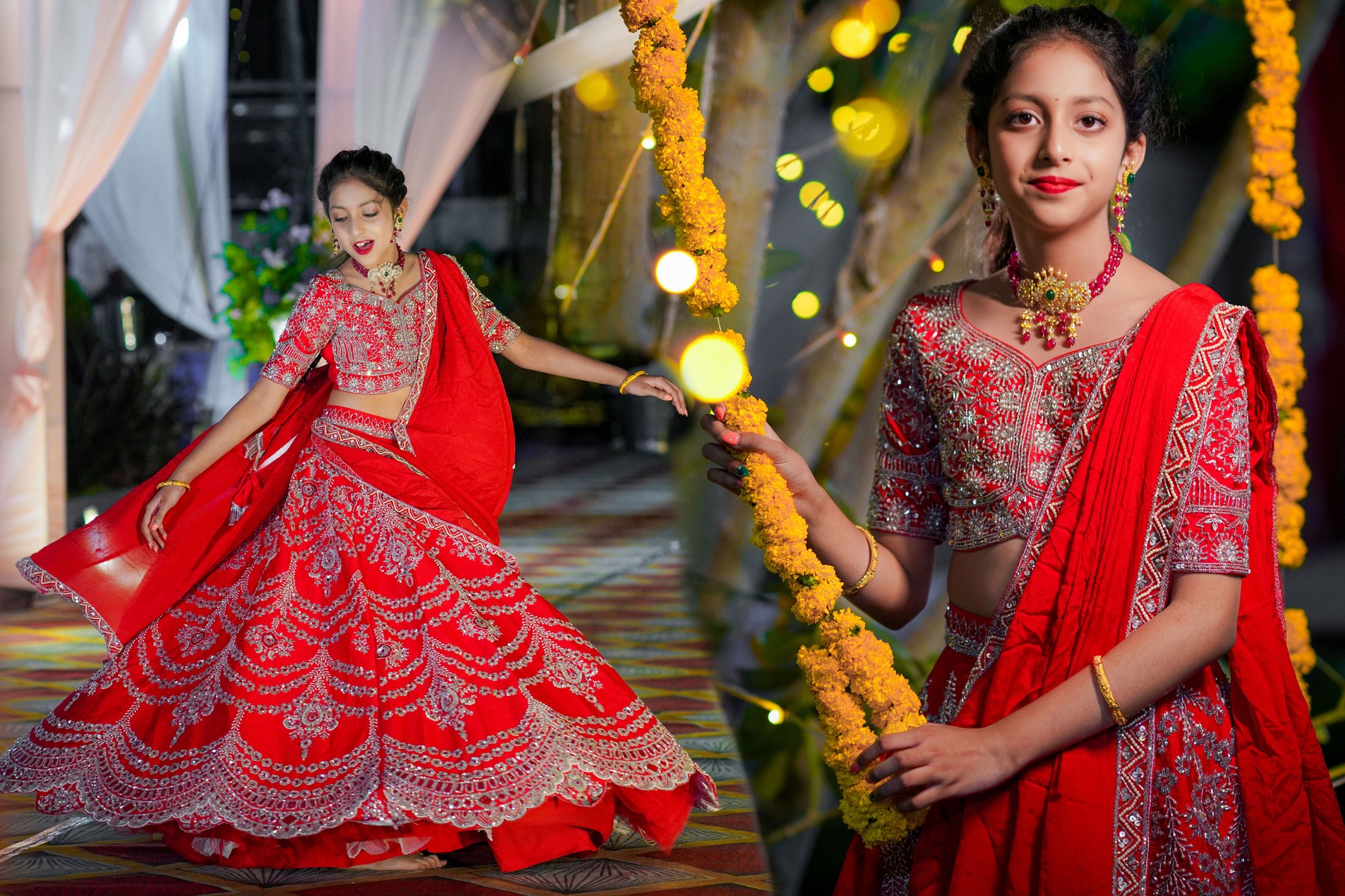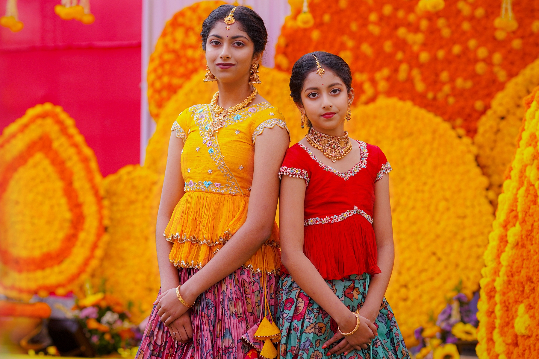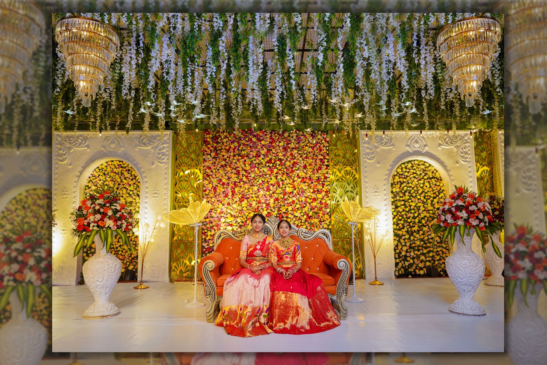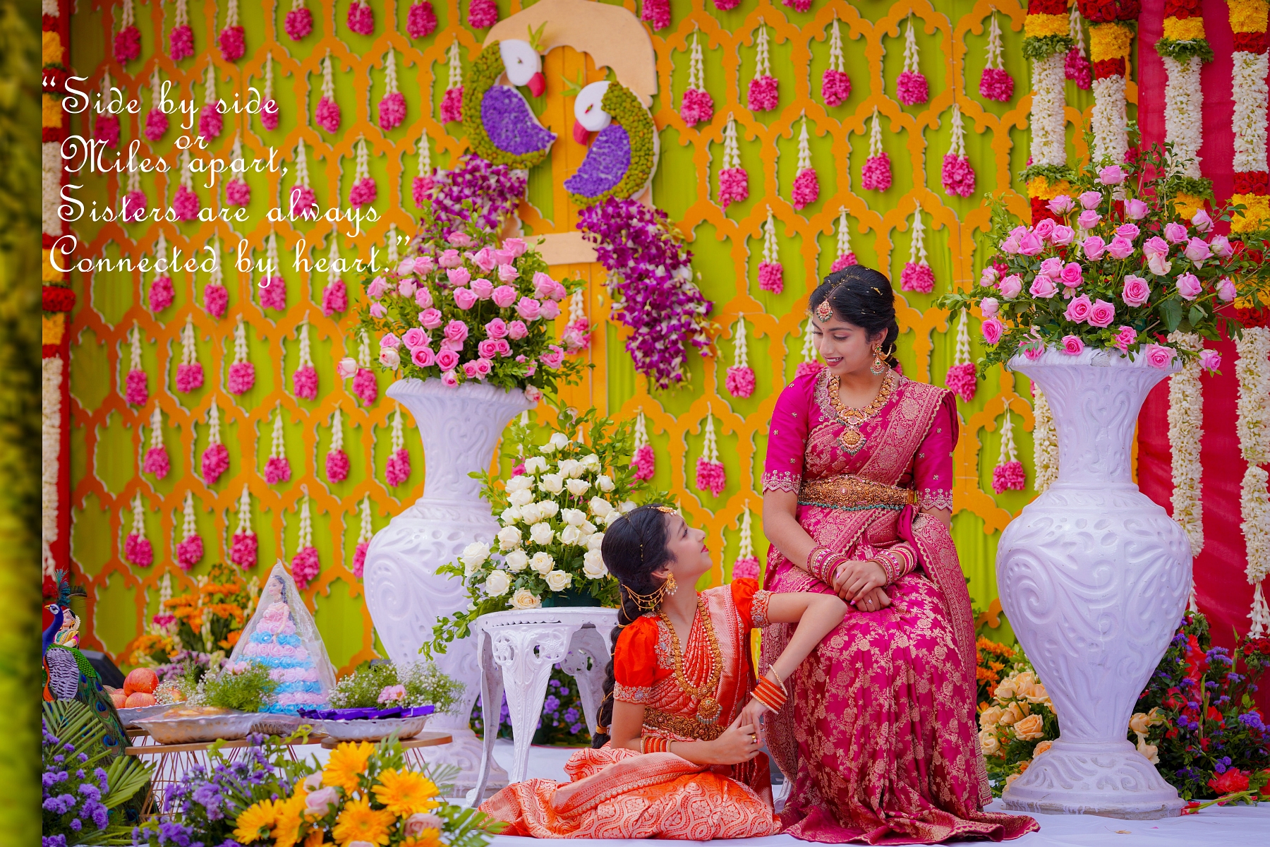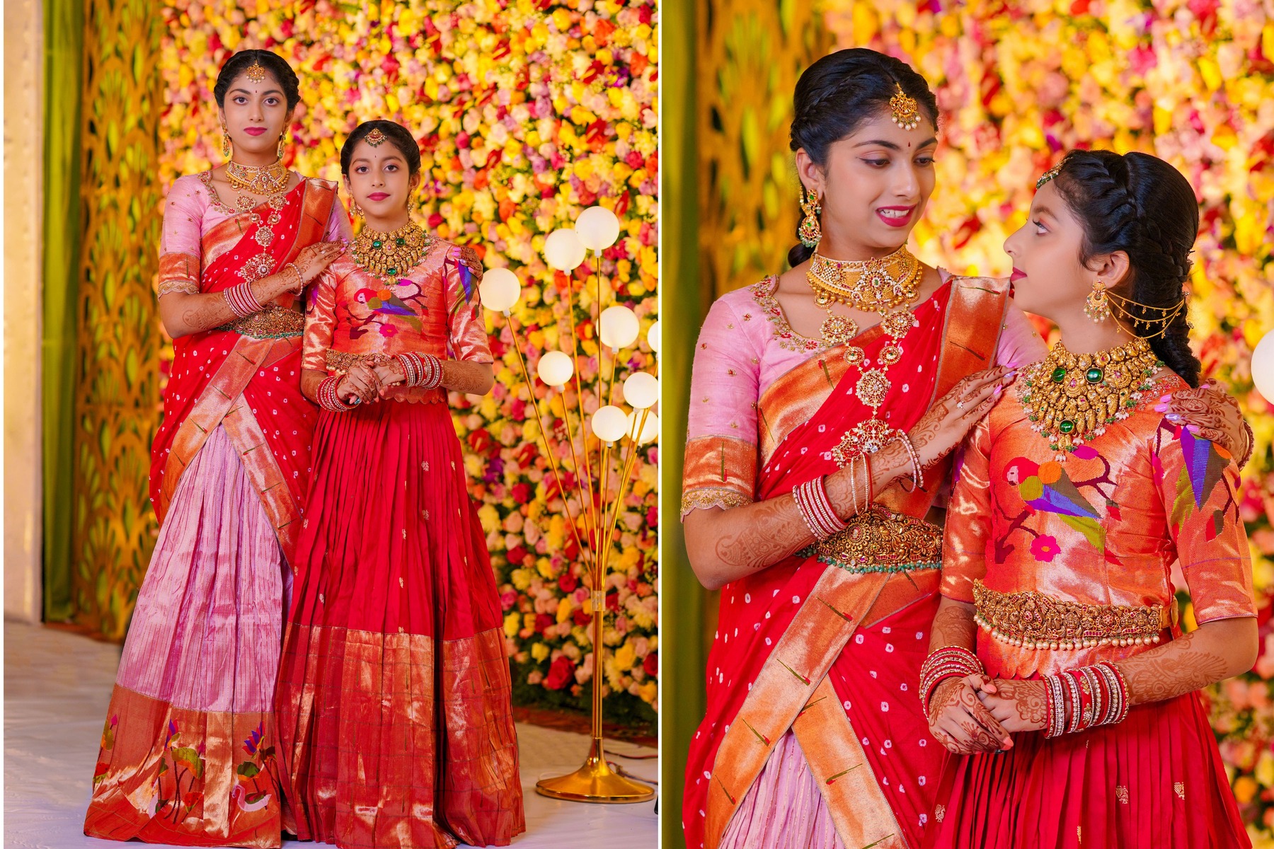 The pooja setting was serene — the fragrance of flowers, blessings from elders, and the sisters’ joy became memories etched in light and color.