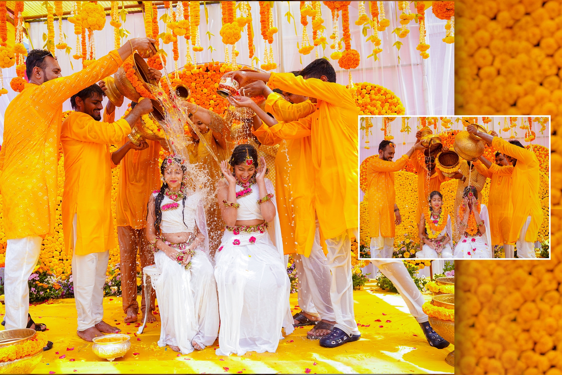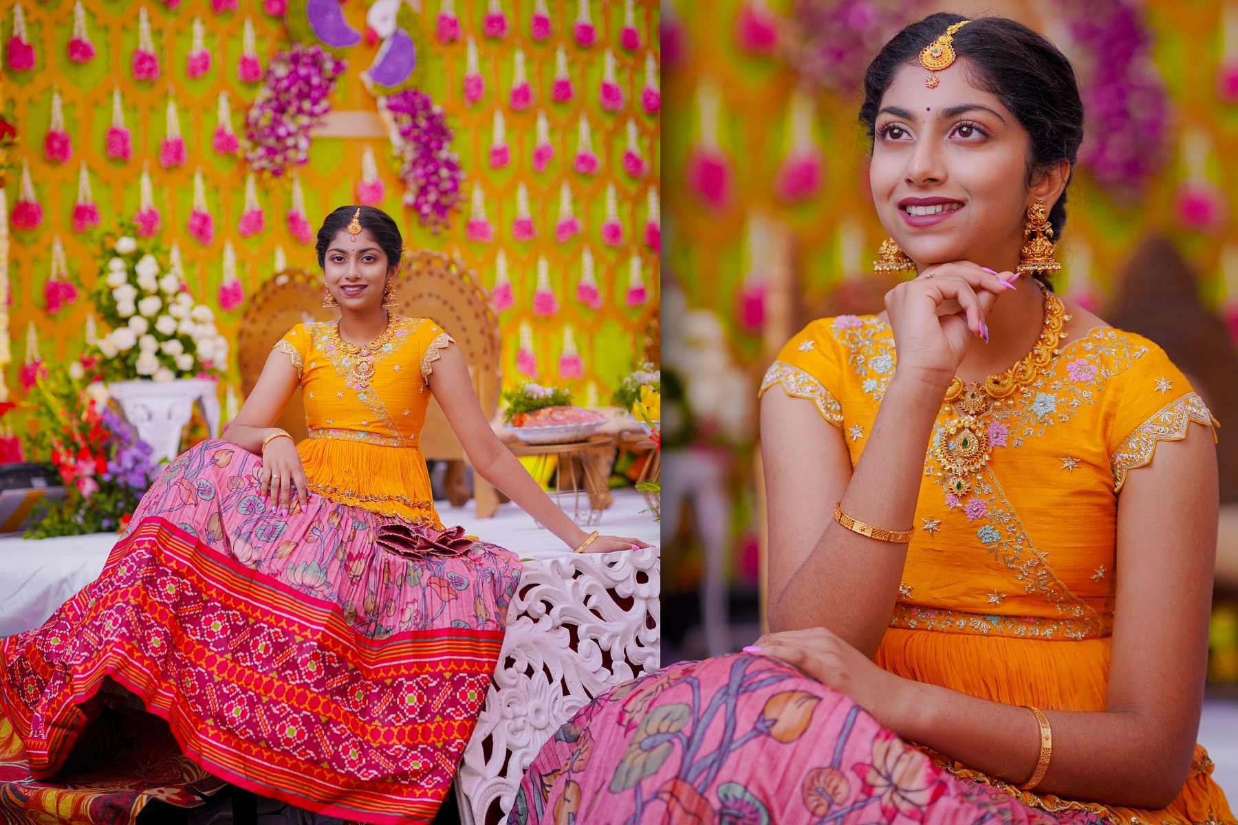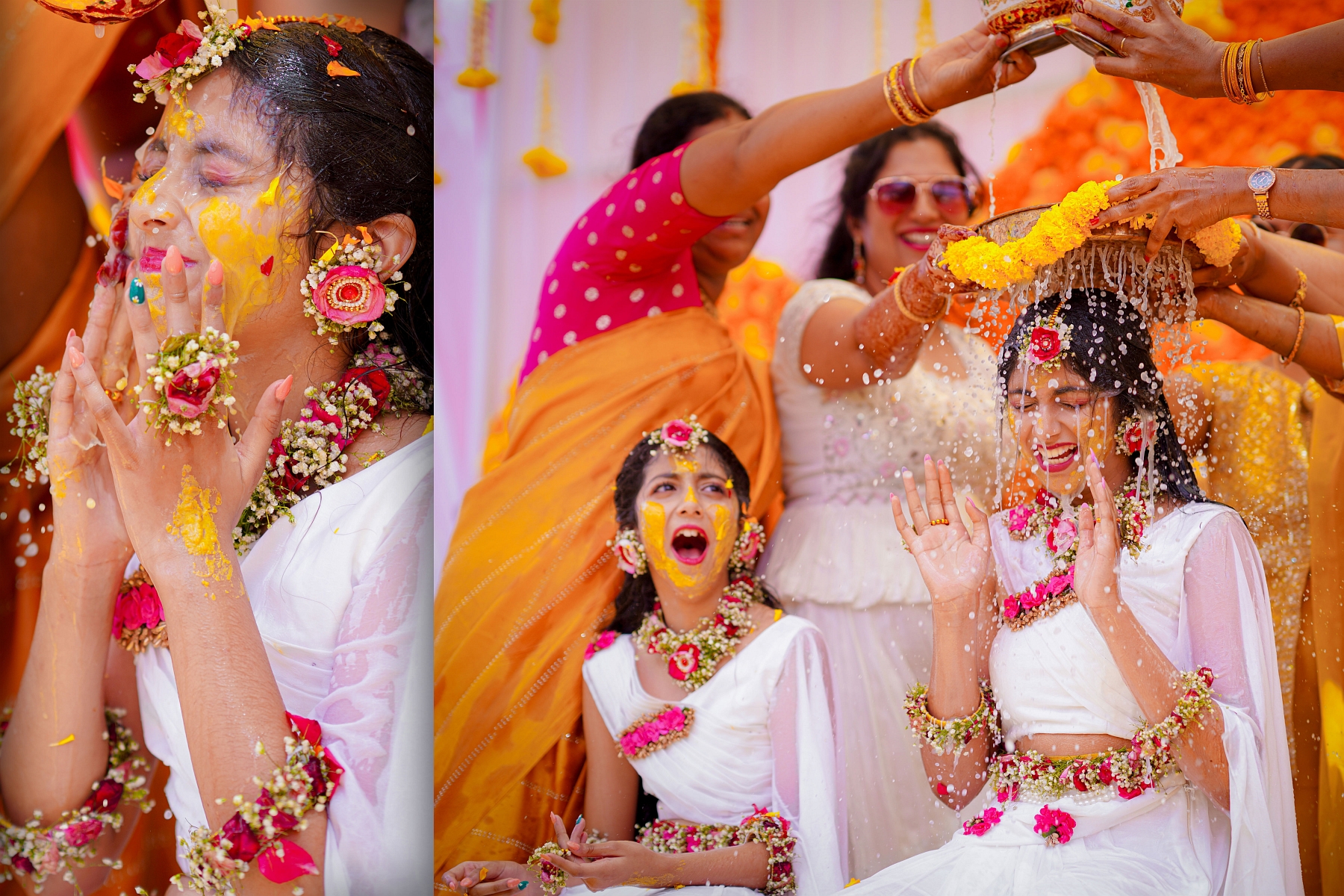 The morning began with warmth, laughter, and the golden hue of turmeric filling the air. Ranhitha and Sanhitha looked radiant as ever — their glowing smiles perfectly matching the spirit of the ceremony.