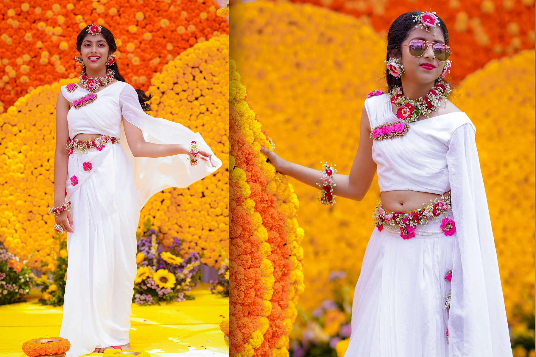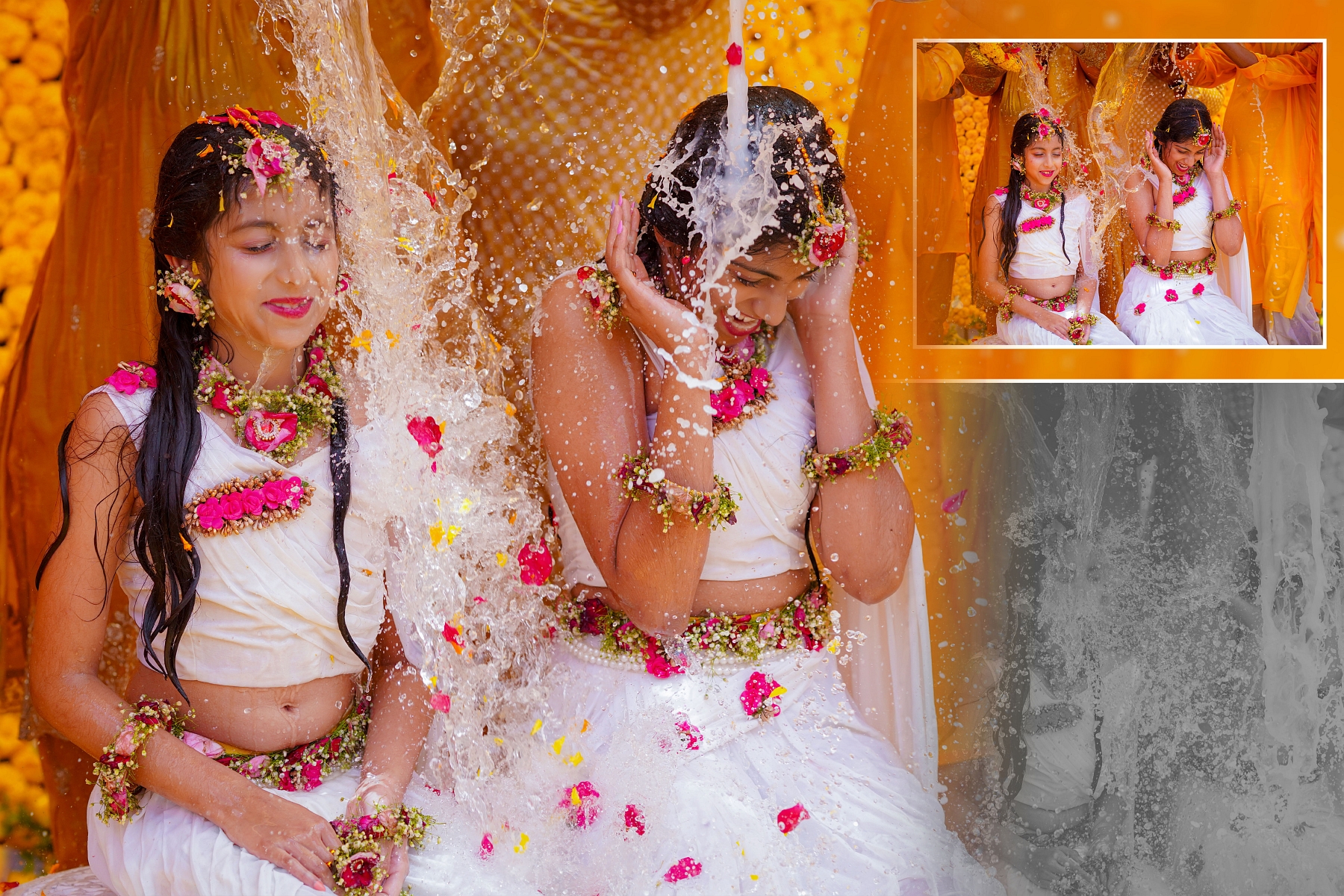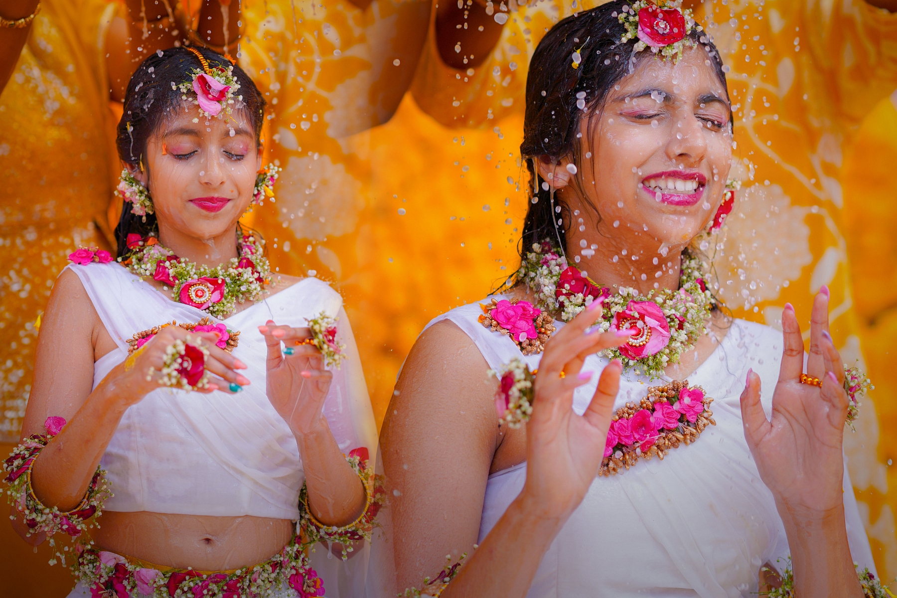 The morning began with warmth, laughter, and the golden hue of turmeric filling the air. Ranhitha and Sanhitha looked radiant as ever — their glowing smiles perfectly matching the spirit of the ceremony.