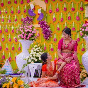 Anshika’s Half-Saree Ceremony was a mesmerizing blend of tradition, elegance, and vibrant celebrations. From the sacred Mangalasnanam to the colorful Mehndi and the grand ceremony, every moment was filled with love and cultural richness. The festivities concluded with a lively after-party, doubling as Akshika’s birthday Sangeet, making it a night to remember.