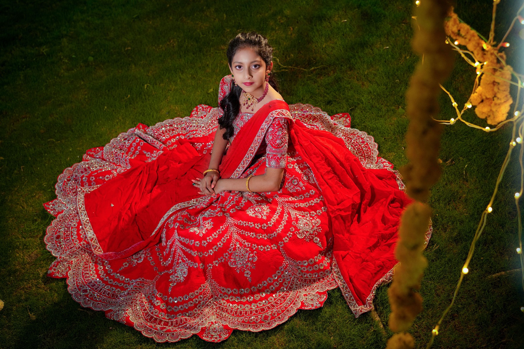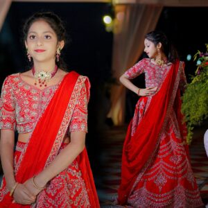 PixelMatrix Photography beautifully captures the charm and warmth of Krishika and Anshika’s Half-Saree Ceremony — a celebration woven with emotions, family love, and timeless elegance.