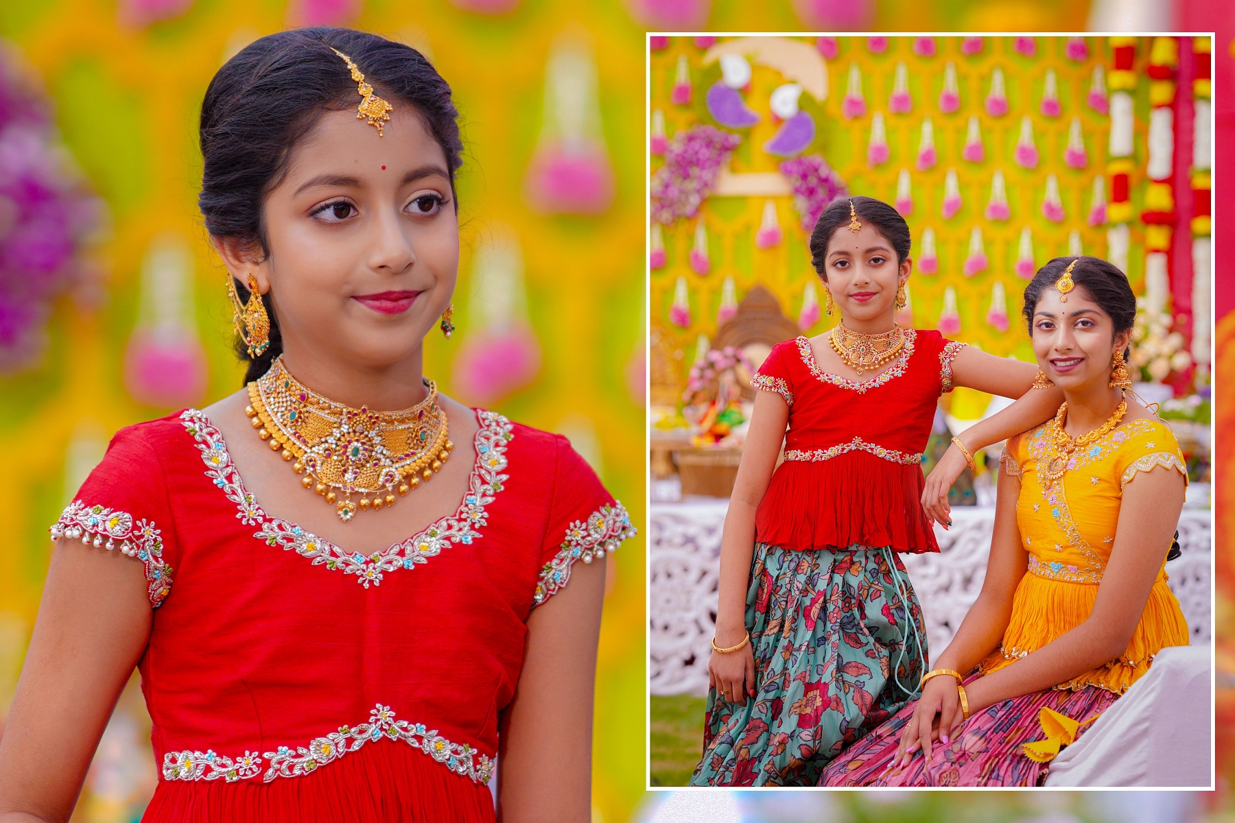 For PixelMatrix Photography, capturing the Half-Saree Ceremony of Ranhitha and Sanhitha was one such heartfelt experience, filled with color, culture, and the bond of two sisters stepping into a new chapter of their lives.