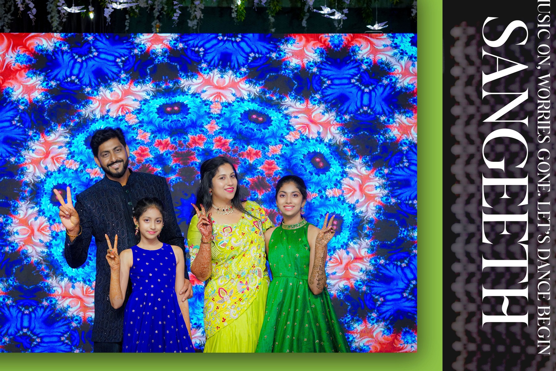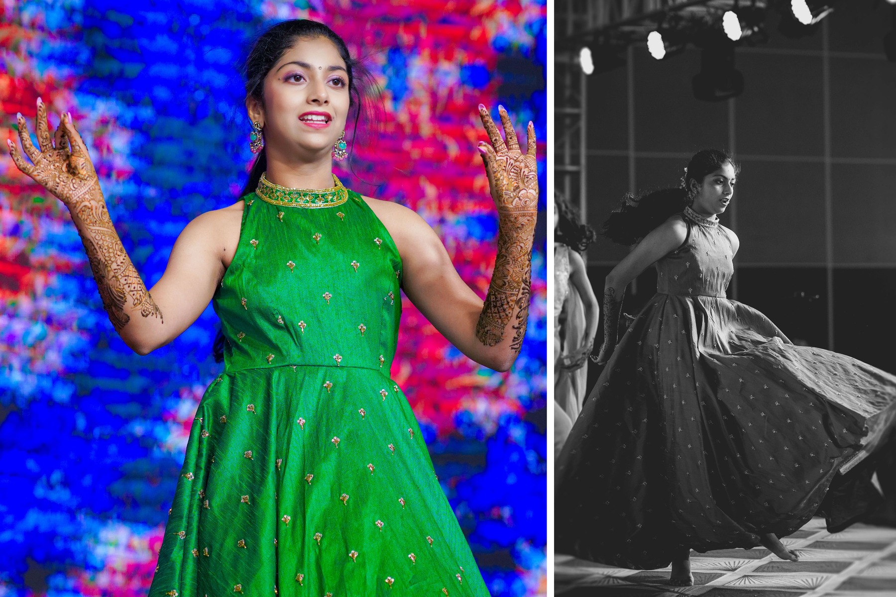 As the day turned into a night of lights, the celebration found its rhythm. The Mehndi and Sangeeth events were vibrant, filled with dance, laughter, and love.